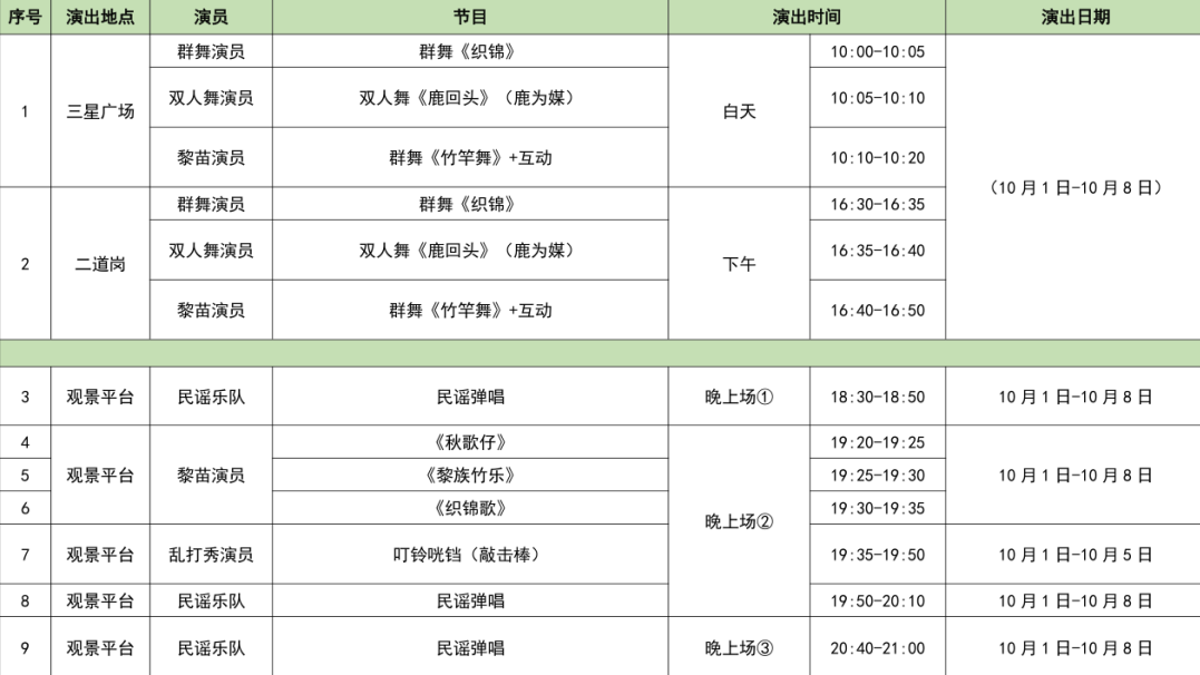 黄金周假期期间,鹿回头风景区围绕黎苗民俗文化主题将为游客带来系列精彩的演艺表演,涵盖黎苗民俗互动、民谣弹唱、村民民俗表演等多种民俗演艺节目,吸引游客前往体验,宣扬特色的民族风情旅游资源,并为全天的精彩活动助燃造势。